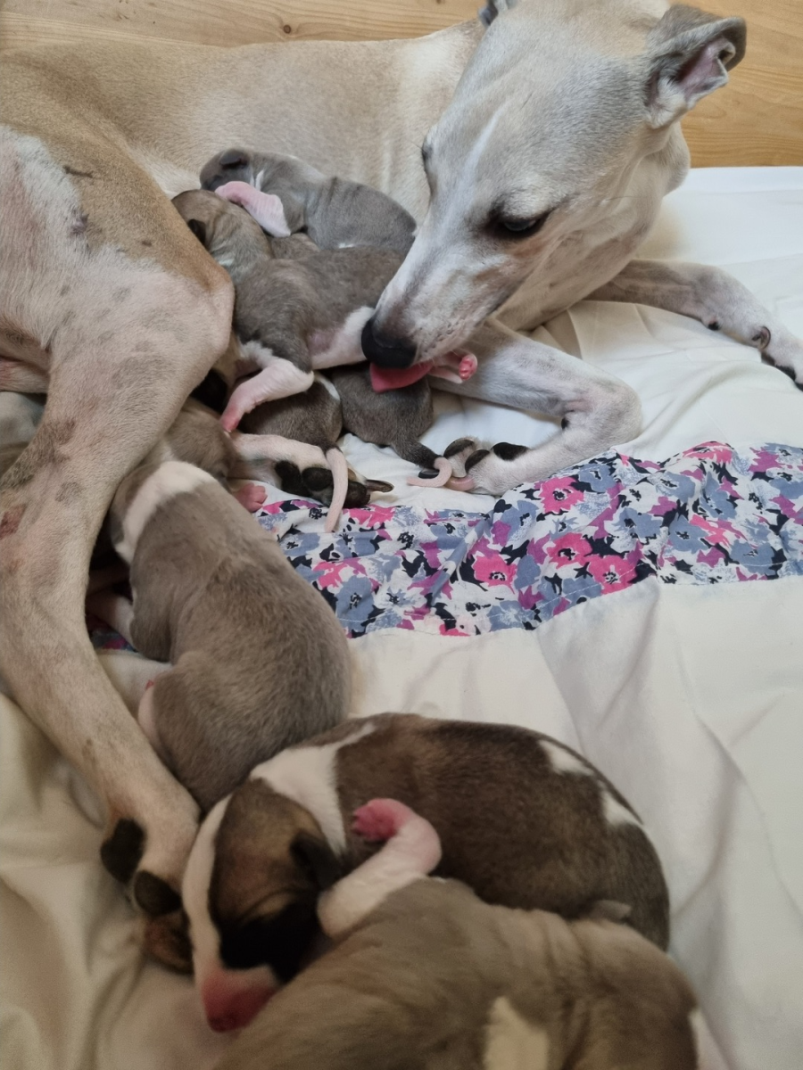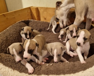 RACHEL stammt aus der Whippet Zuchtstätte "Cherubim's Royal"